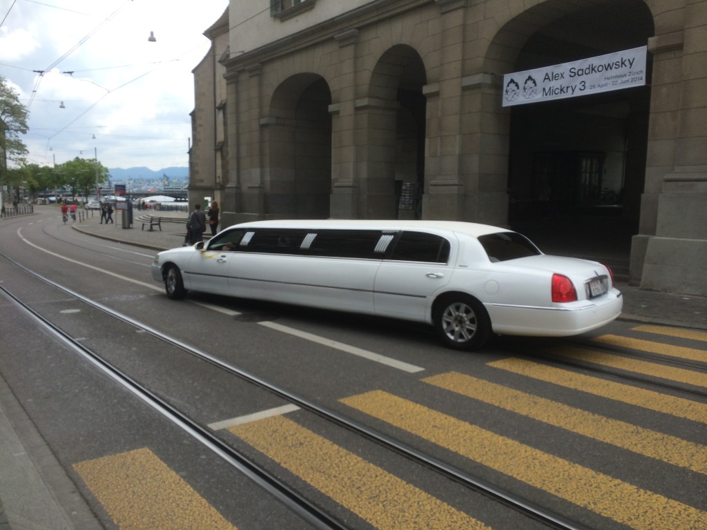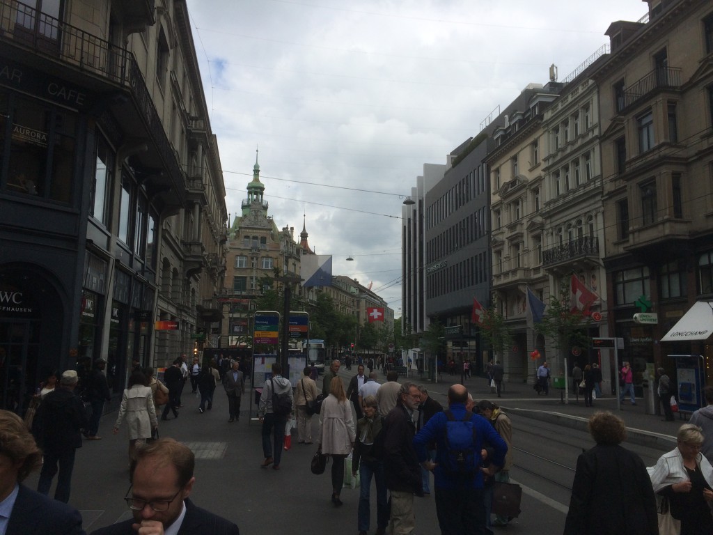Après m’être restauré je décide de remonter cette célèbre Banhoffstrasse du Sud vers le Nord, c’est à dire des magasins les plus chers vers ceux beaucoup plus abordables. La ville est très basse et très calme. C’est assez surprenant d’entendre les oiseaux en plein centre-ville, surtout à cette heure. Les gens sont d’un civisme exemplaire : hormis sur les grands axes, il y a très peu de feu de passage piéton : les automobilistes s’arrêtent naturellement pour les laisser passer. Je passe devant la célèbre enseigne MANOR, ainsi que beaucoup d’autres et prends le temps de m’arrêter à l’apple store pour consulter mes mails ( et oui, geek un jour, geek toujours !). Je prends également le temps de contempler une magnifique limousine qui aborde parfaitement son virage.Après cette belle ballade je décide de retourner à l’hôtel par le tramway.