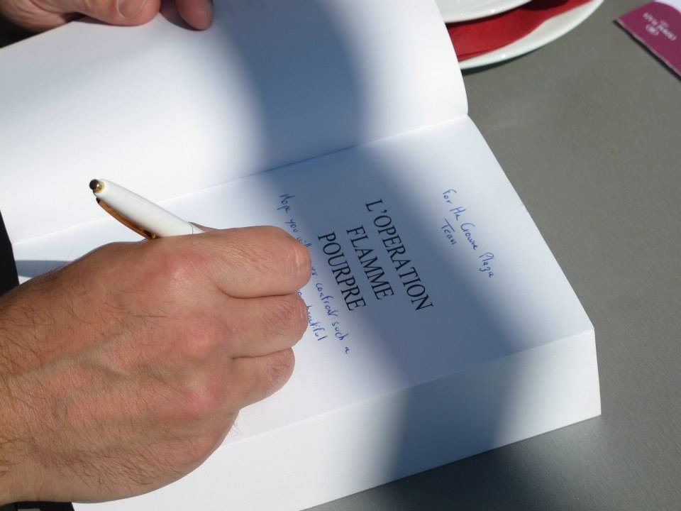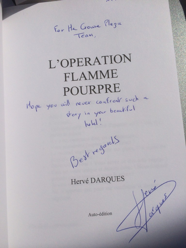Je me présente à la réception afin de rencontrer la responsable Web Marketing avec qui je passe un excellent moment à expliquer l’histoire du roman, la façon dont j’ai décrit son hôtel, etc… Pour la première fois, je signe une dédicace dans la langue de Shakespeare.